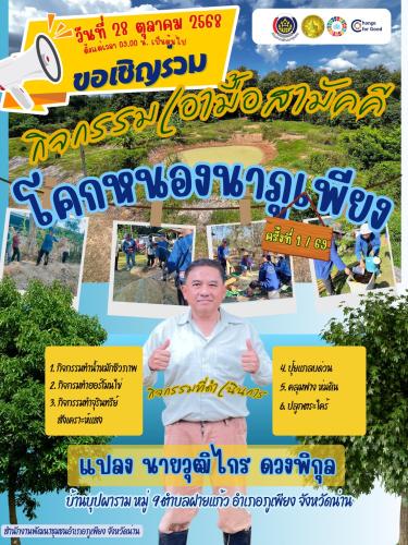 พช.ภูเพียง ๑ เดียว : ขอเชิญชวนร่วมกิจกรรมเอามื้อสามัคคี โคกหนองนาภูเพียง